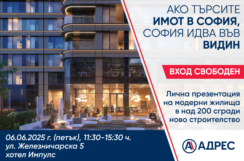 АДРЕС разполага с богато портфолио от недвижими имоти в продажба или под наем. Чрез собствена мрежа предлага – имоти в София, имоти във Варна, имоти в Пловдив, имоти в Бургас.