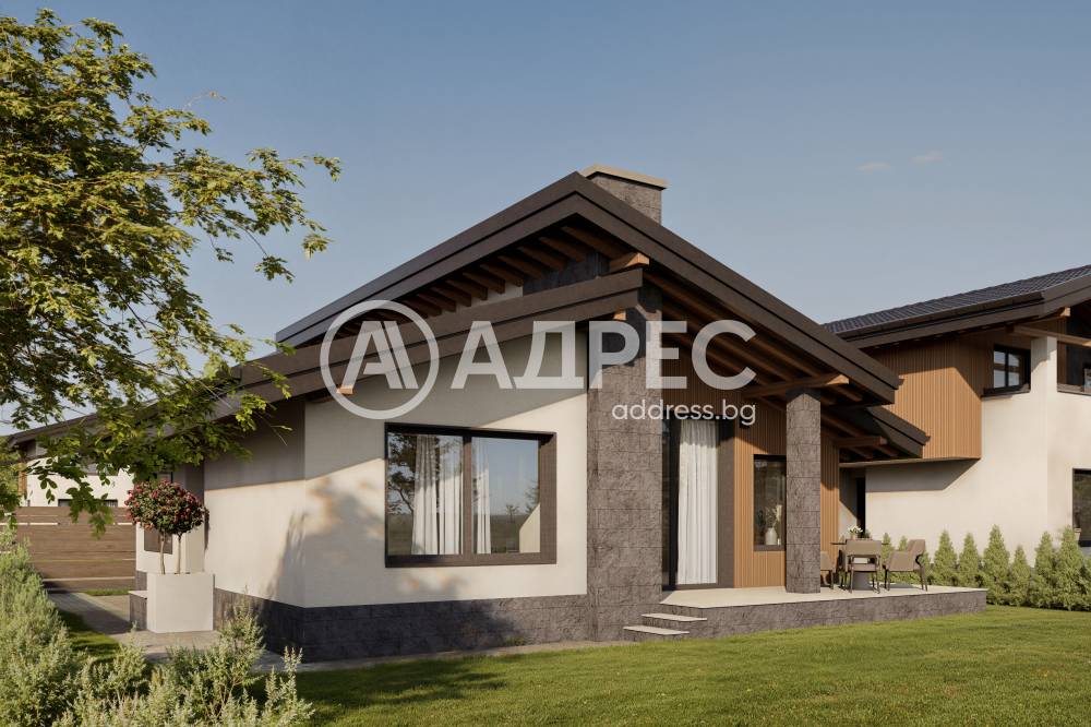 - В детайла на фасадата са заложени облицовка от естествен камък и имитация на дърво.