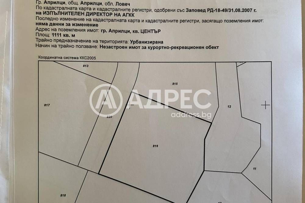 Урегулиран парцел с инвестиционен потенциал в централната част на Априлци