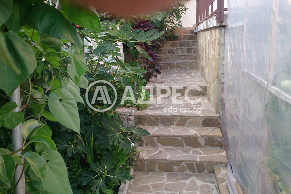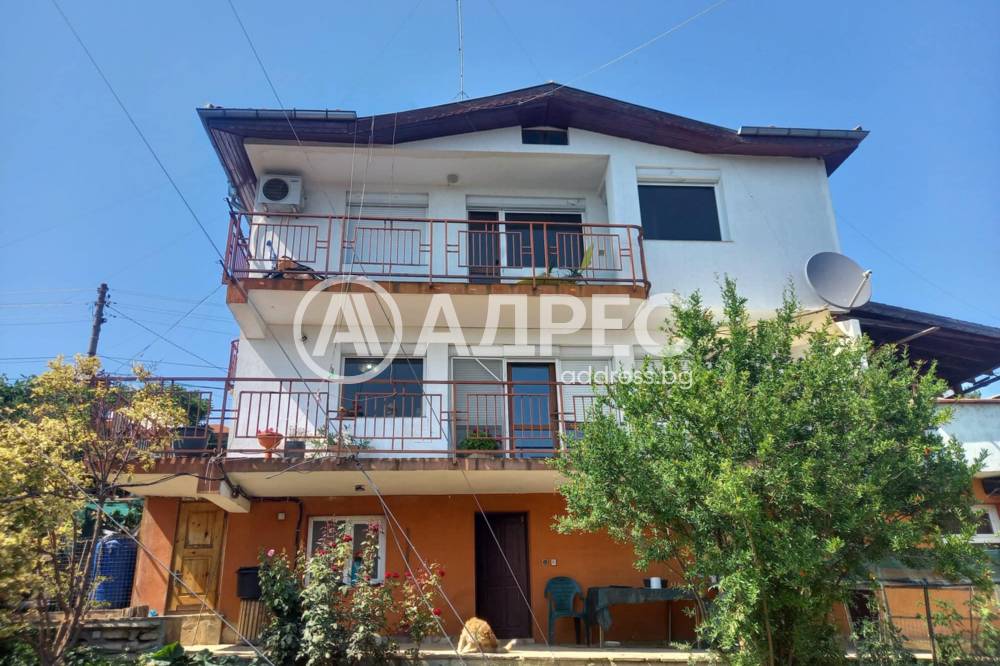 Триетажна вила с морска панорама във вилна зона Изгрев,общ.Балчик със РЗП 187 кв.м. и дворно място с площ от 485 кв.м.Състояща се от сутерен от две стаи,коридор и склад,първият етаж е голяма всекидневна с трапезария и кухня,коридор,баня и тоалетна,вторият етаж е три спални,баня и тоалетна и две тераси с красива морска панорама.Къщата се продава с обзавеждането.Дворното място е добре оформено и подържано има и гараж за две коли.