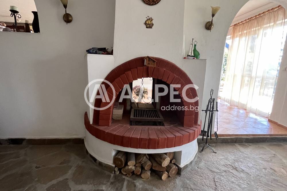На първия етаж на вилата има кухня с голяма трапезария, хол с камина, баня с тоалетна и килер. Пред етажа има чудесна площадка за отдих.