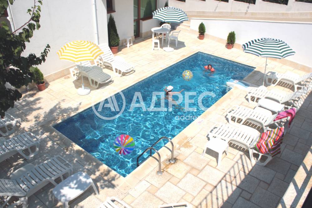 Чудесен апртамент на първи етаж с площ от 83,8 кв.м.,маза 7,60 кв.м. с право на ползване на двор тераса от 60 кв.м.. Апартамента се състои от две спални,хол с кухненски бокс, баня с тоалетна.Апартамента се намира в сграда с контролиран достъп и басейн.Апартамента е готов за целогодишно живеене.