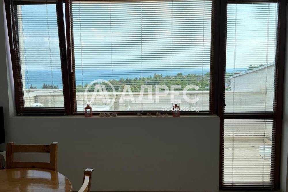 Чудесен мезонет с морска панорама с площ от 103 кв.м. Апартамента се състои от две спални,хол с кухненски бокс,баня с тоалетна и четири тераси(едната е 360 градусова панорама.Апартамента се намира в сграда с контролиран достъп и басейн.Апартамента е готов за целогодишно живеене.