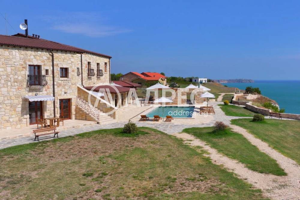 Това имение съчетава природна красота, масивна каменна архитектура и работещ туристически бизнес – рядка възможност за инвестиция на самия морски бряг.