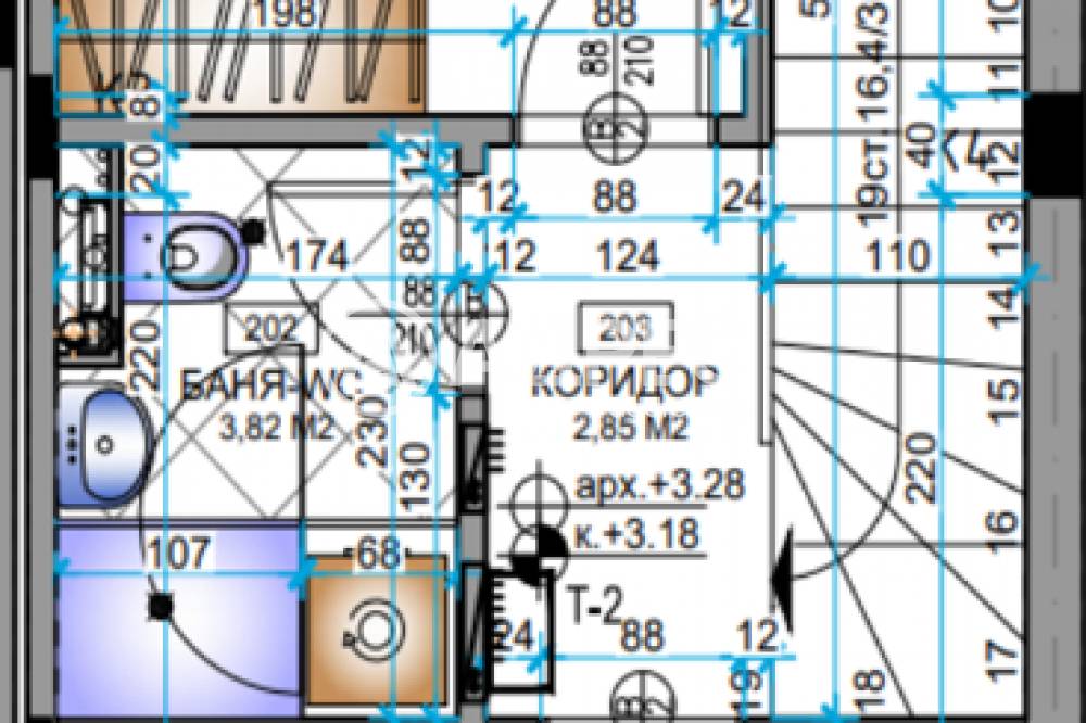 Без КОМИСИОННА за купувачи! Къщата се състои от дневна с кухненски бокс, антре, санитарен възел на партерен етаж. На втори етаж са разположени две самостоятелни спални, баня с тоалетна, тераса. Възможност за закупуване на външно паркомясто 13 000 евро.