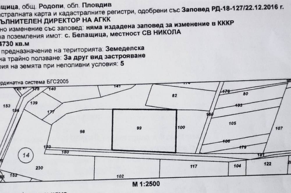 Представяме на Вашето внимание УПИ в с. Белащица. Парцелът е 4730 м2 в местността св. Никола, с ПУП ниско застрояване до 12 м.