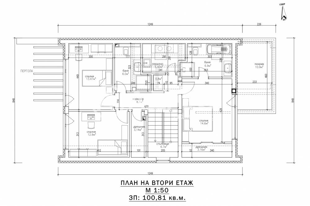 - Покрив-керамични керемиди- цвят антрацит.