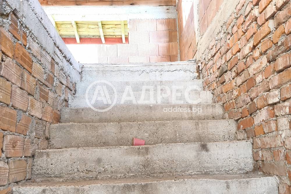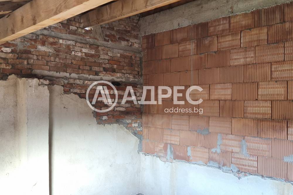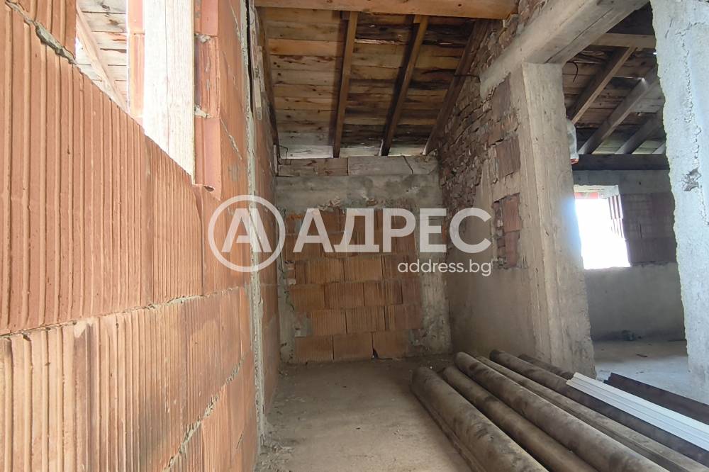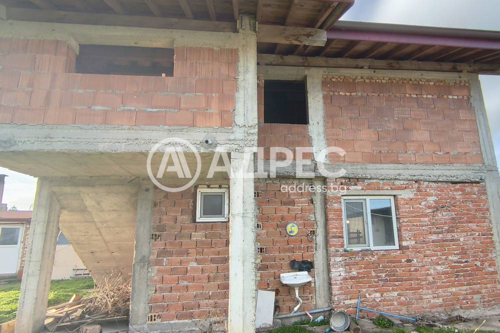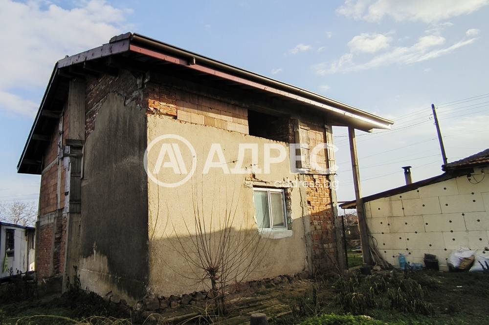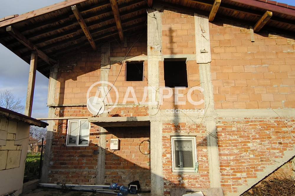 Адрес, предлага за продажба двуетажна къща на груб строеж, състояща се от 1ви етаж: дневна с кухненски бокс, спалня и санитарен възел, 2ри етаж: две спални, санитарен възел, тераса. Разположена е в дворно място с площ от 450кв.м., в което има сонда. Имота е с лице на две улици, има канализация. Има нужда от довършителни строителни дейности!