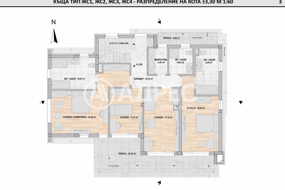 Самостоятелнa къщa с РЗП 330кв.м и двор 500кв.м. Голяма просторна всекидневна над 50м2, с закрита веранда от 28м2, двоен гараж, сервизно помещение и баня/тоалетна на ниво 1. Ниво 2 разполага с 4 спални, 3 бани/тоалетни, мокро помещение, 2 тераси.