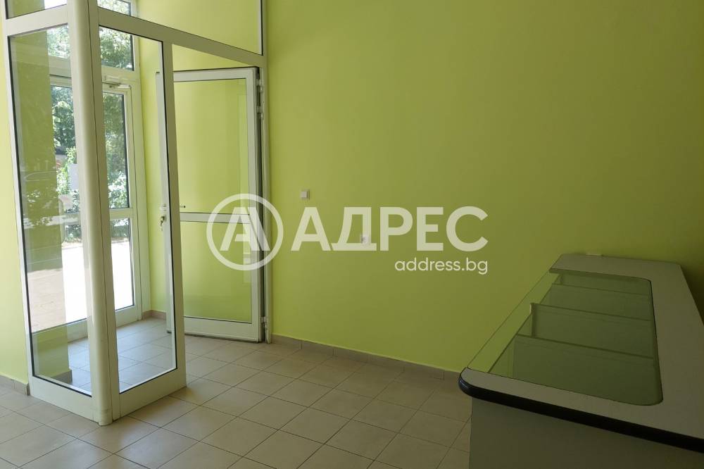 Агенция АДРЕС недвижими имоти предлага под наем партерен магазин в центъра на града близо до АУБГ. Магазинът е с лице към оживен район с непрекъснат поток от хора,има площ от 52 кв.м и се състои от търговска зала, санитарен възел,малък офис и складово помещение с излаз към улична синя зона с възможност за паркиране и зареждане със стоки. Предлага се след основен ремонт и частично ново оборудване с необходими за работа в магазин стелажи,бюро,портманто,шкафове, рекламна витрина и др.