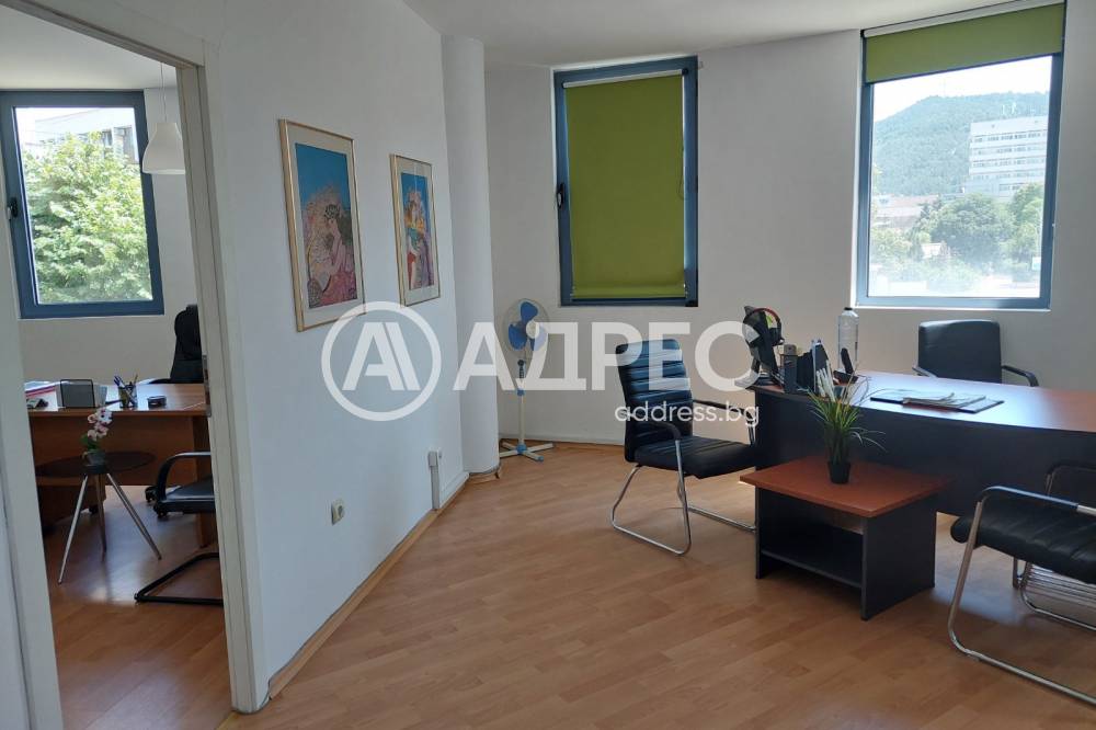 Агенция недвижими имоти Адрес предлага за продажба офис в идеален център.Намира се на трети етаж в нова бизнес сграда с чиста застроена площ 66.58 кв.м ведно с общи части 23.58 кв.м. Състои се от антре, три помещения и санитарен възел. В сградата има асансьор.Общите части на сградата са с луксозно изпълнение.Офисът се продава без оборудването!