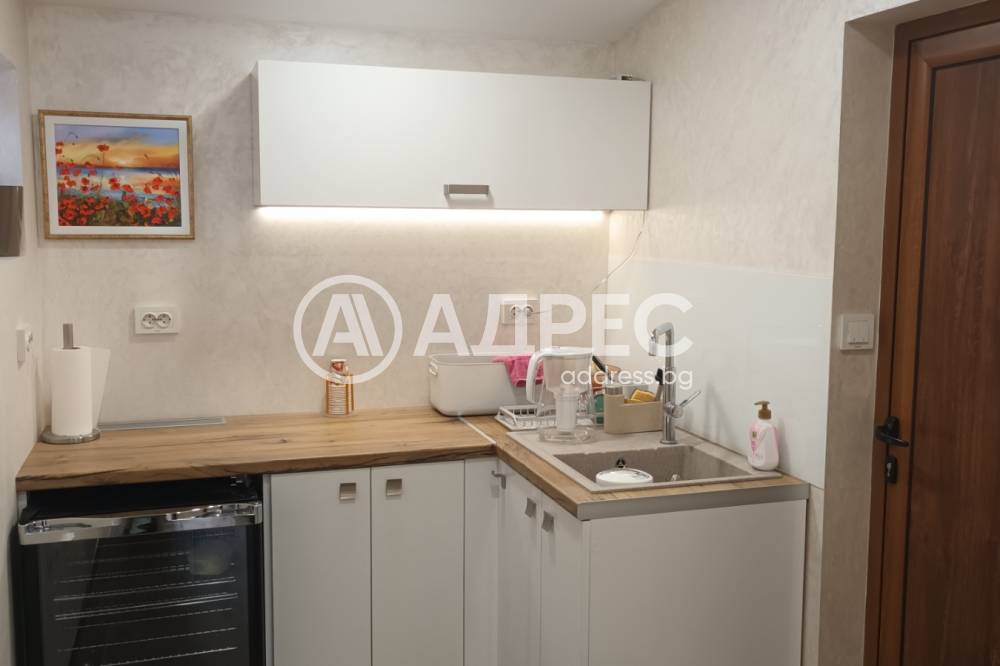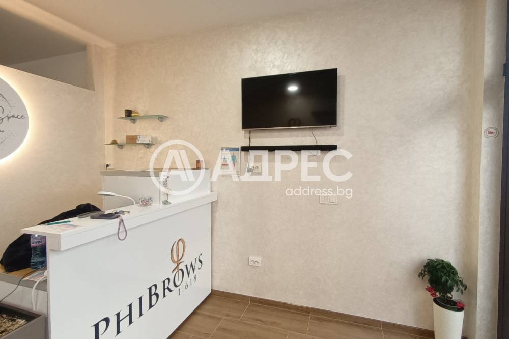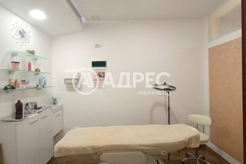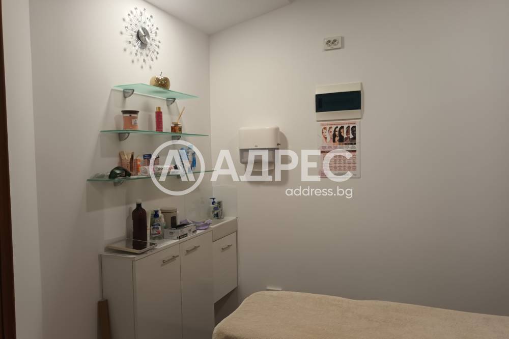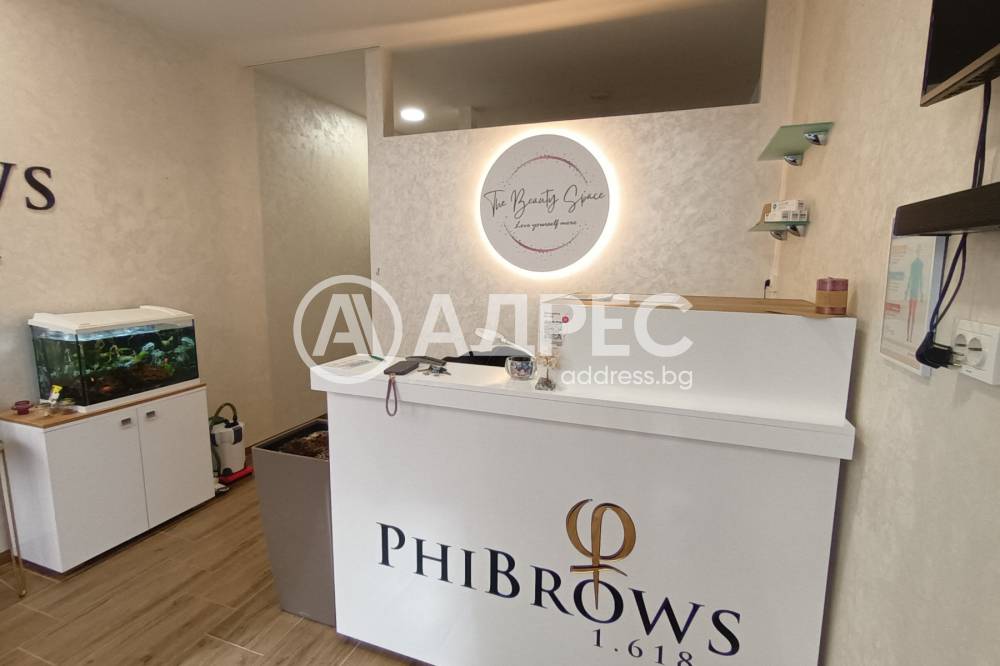 Агенция Адрес предлага на Вашето внимание луксозен салон за красота в центъра под наем. Помещението е с площ от около 40 кв.м. и се състои от отделени рецепция, стая за процедури, кухненски кът и санитарен възел. Отоплението е посредством нов климатик.