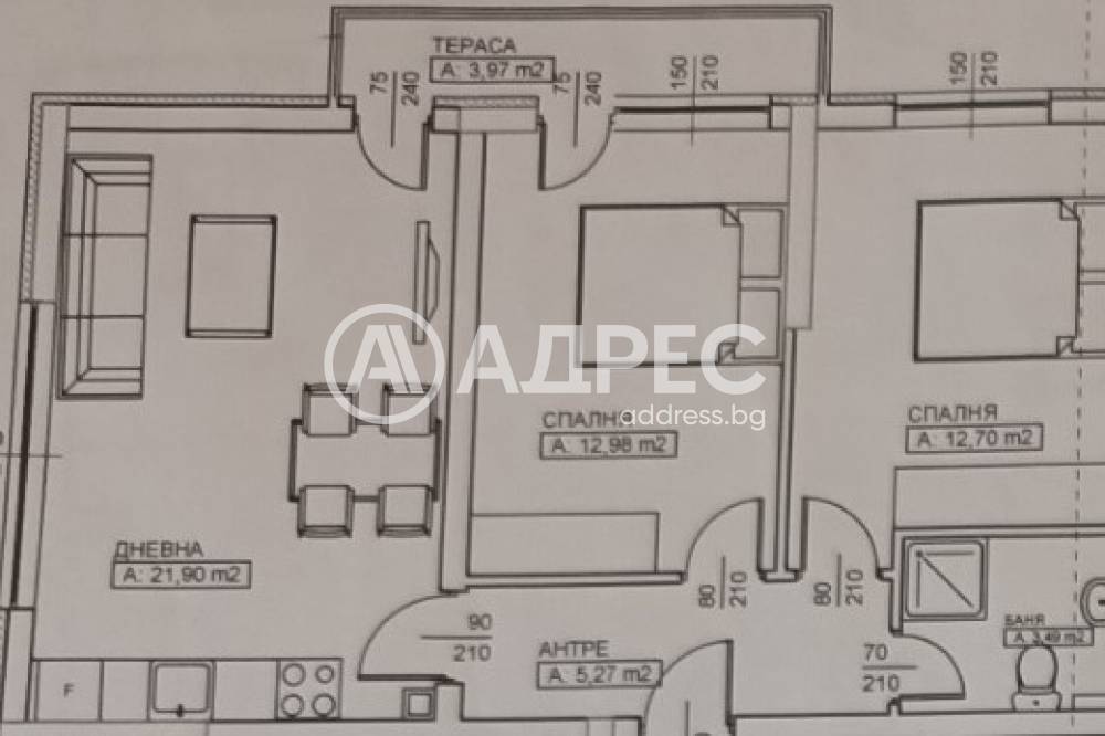 Агенция Адрес предлага на Вашето внимание тристаен апартамент в новострояща сграда в квартал Еленово за продажба. Апартаментът е с площ от 79.8 кв.м. (71.60 кв.м. чиста площ + 8.20 кв.м. общи части). Намира се на първи жилищен етаж в новострояща сграда, в която е предвиден асансьор. Състои се от входно антре, всекидневна с кухня, две спални, баня с тоалетна и тераса.