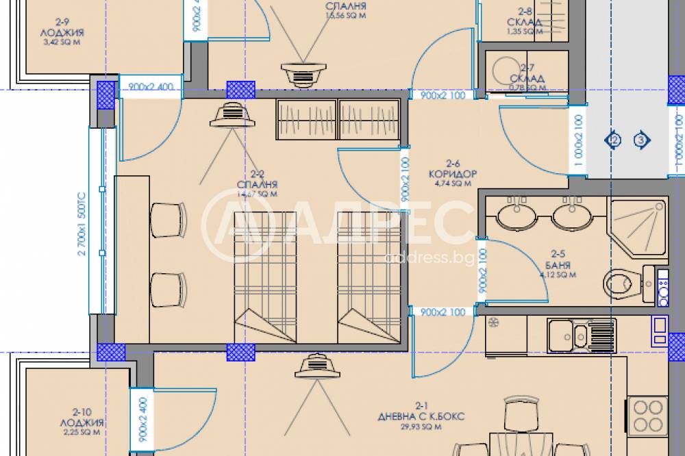 Тип Имот: Тристаен апартамент
