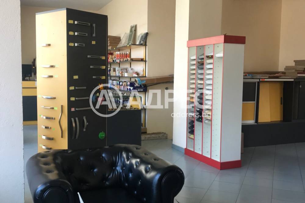 Агенция Адрес предлага на Вашето внимение магазин под наем с площ 116,91 кв. м. на две нива. Склад кота 0 - 2,50 ,два санитарни възела (на 1 етаж ,както и в склада). Стая за отдих. Подът е с ламиниран паркет и плочки ,стените са с латекс. Магазинът е с един вход . ПВЦ дограма ,2 големи витрини, гледащи към главната улица на квартала.