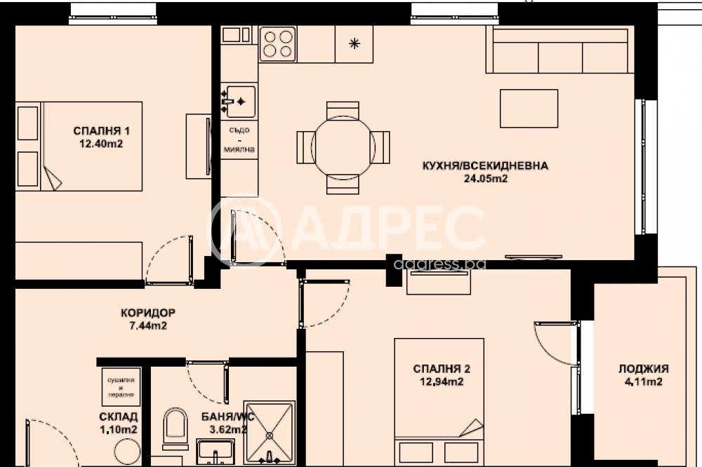 Тип Имот: Тристаен апартамент