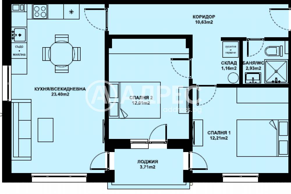 Към апартамента принадлежи и мазе. Допълнително може да се закупи паркомясто.