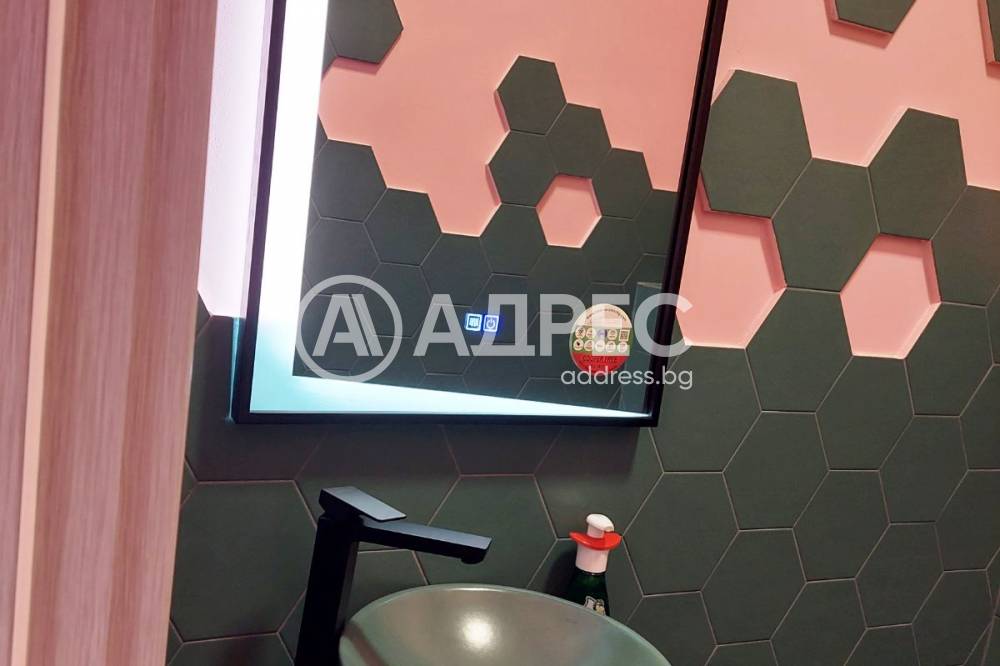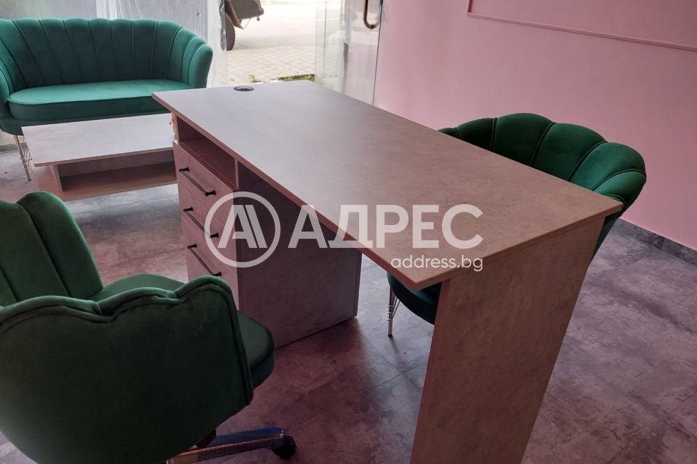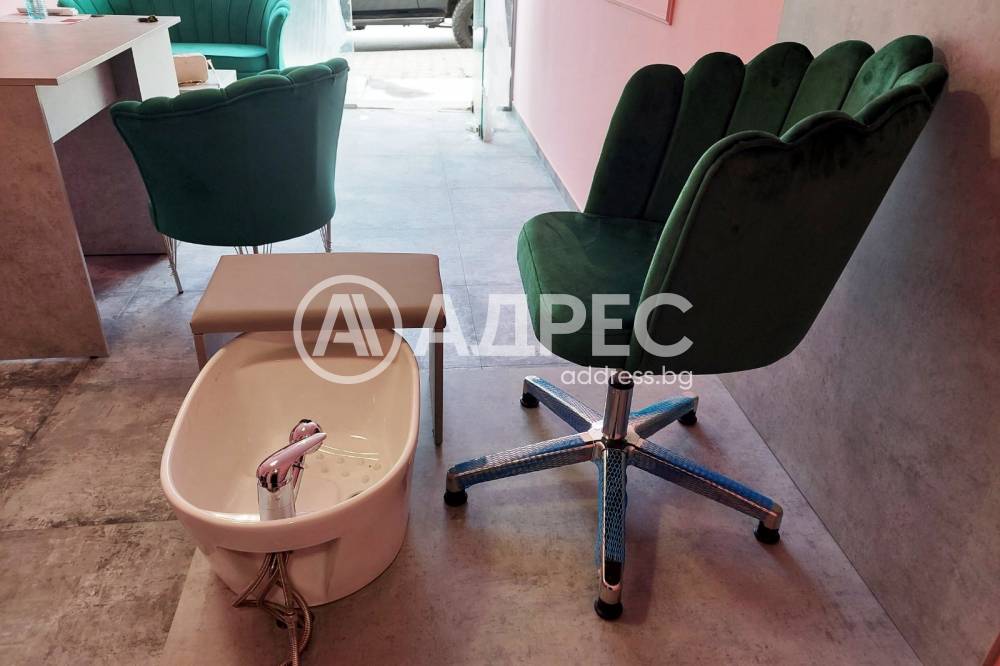 Агенция АДРЕС недвижими имоти предлага под наем партерно студио за маникюр и педикюр в ниската зона на кв. Освобождение. Студиото е с площ от 30 кв.м и се предлага в напълно завършен вид с ново стилно и модерно дизайнерско оборудване.Състои се от зала,баня с WC и складово помещение.Завършено е с висококачествени материали.Подът е с плочки,а стените-боя.Обзаведено е с всички необходими мебели(диван с маса,бюро,удобни столове,подиум и вана с подвижен душ,стелаж за лакове и други материали). Отоплението и охлаждането са решени с климатик от висок клас. Студиото е с много удобна локация в оживен район близо до ЮЗУ,студентските общежития и с възможност за свободно паркиране на обособен самостоятелен паркинг пред сградата.