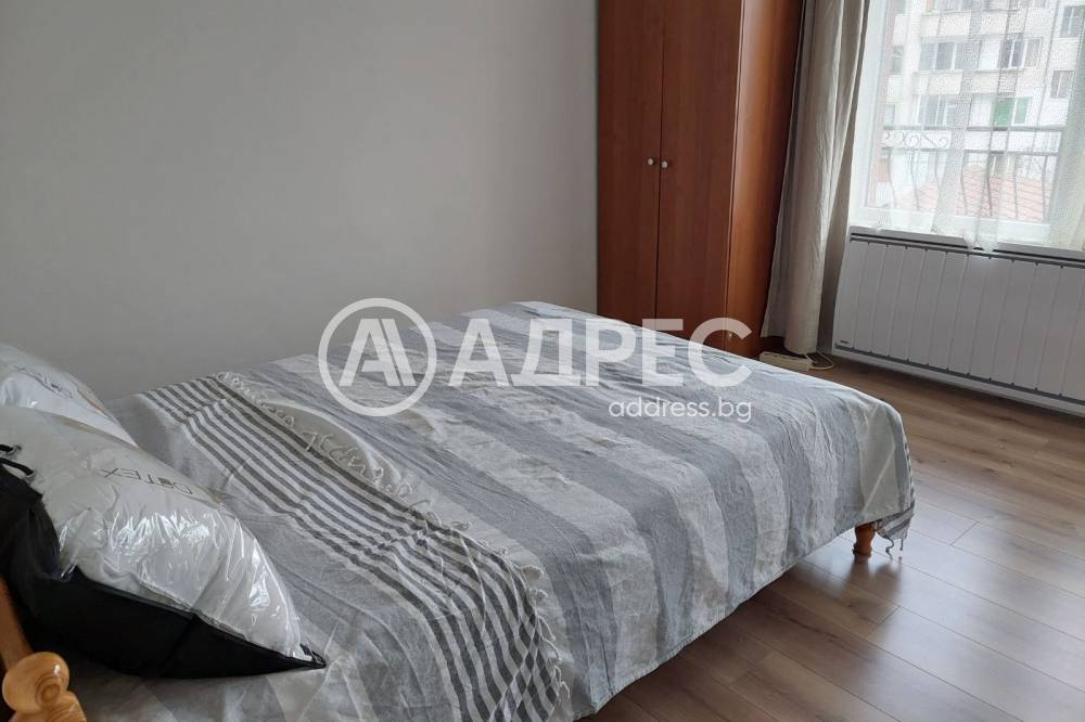 Агенция АДРЕС недвижими имоти предлага под наем двустаен апартамент в широк център близо до пето СОУ. Жилището се намира на трети непоследен жилищен етаж от четириетажна тухлена сграда без асансьор.Състои се от входно антре,баня (с душ кабина) и WC,кухня и две спални (едната с излаз на тераса с южно изложение). Апартаментът е обзаведен с необходимите за ежедневието електроуреди ( готварска печка,хладилник,микровълнова фурна,съдомиялна) и мебели. Отдава се под наем след основен ремонт.