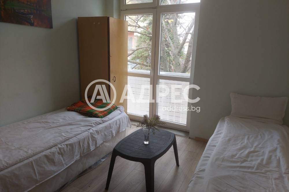 Агенция АДРЕС недвижими имоти предлага под наем стая с две легла в многостаен апартамент на хотелски начала в широк център близо до седмо СОУ. Апартаментът се състои от голям и удобен коридор,три бани с WC,кухненско помещение с трапезария,хол(дневна) ,които се ползват от наемателите. Предоставя се и възможност за почистване на стаята и смяна на спално бельо(по желание ) с допълнително заплащане по 15 лв. на ден(на легло).При наемане на стаята до 10 дни се заплаща по 20 лв.на ден на легло,а до месец по 15 лв. на ден на легло. Условията по офертата подлежат на коментар.
