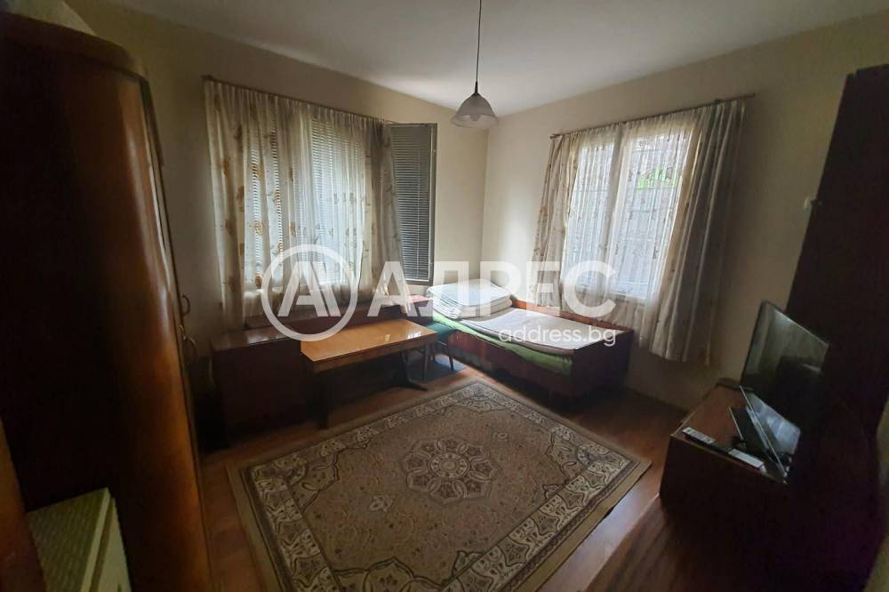 Агенция АДРЕС недвижими имоти предлага за продажба двуетажна масивна къща в широкия център на града с РЗП 140 кв.м. Къщата е разположена в парцел от 150 кв.м. Първият етаж се състои коридор, три стаи и баня с тоалетна. Вътрешни стълби водят към втория етаж, който се състои от коридор, три стаи и баня с тоалетна. Продава се във вида, в който е на снимките. Къщата разполага с избено помещение и таван. Нуждае се от основен ремонт! В цената се включва и САМОСТОЯТЕЛЕН ГАРАЖ! Къщата е на калкан!
