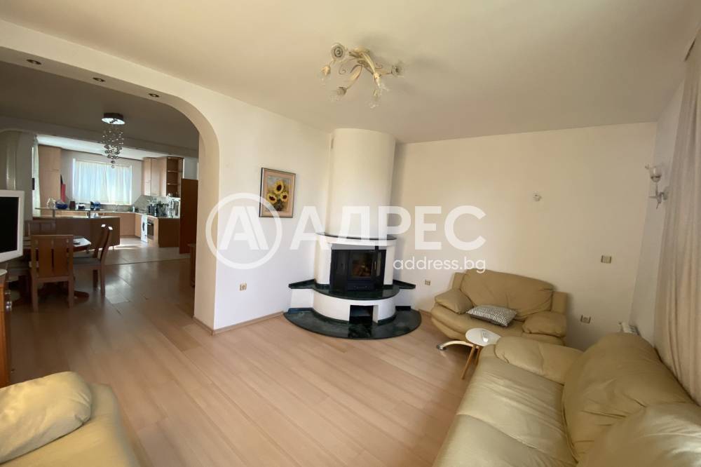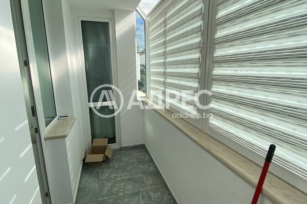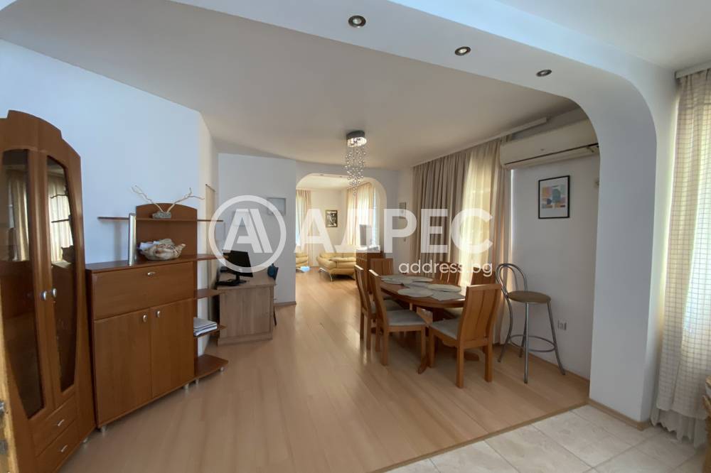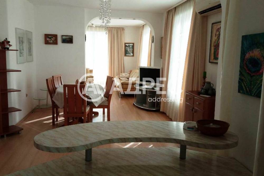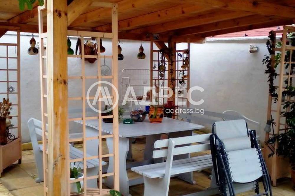 Агенция Адрес предлага етаж от къща в тих и спокоен район, но в същото време недалеч от центъра на града. Етажът се състои от: коридор с вградена гардеробна секция, просторна всекидневна, кухня и трапезария на едно, две спални помещения, две тераси, баня с тоалетна и отделно тоалетна. Жилището е абсолютно обзаведено, с локално парно на ток, климатик и камина. Всекидневната е много голяма и може да се пригоди за спане. Банята е с хидромасажна кабина. Разполага с всички необходими електроуреди, включително и вградена съдомиялна. Къщата и двора са много добре поддържани. Възможност за ползване на вътрешния двор.
