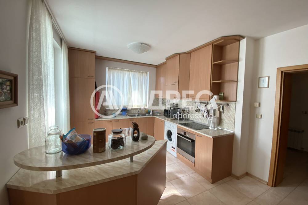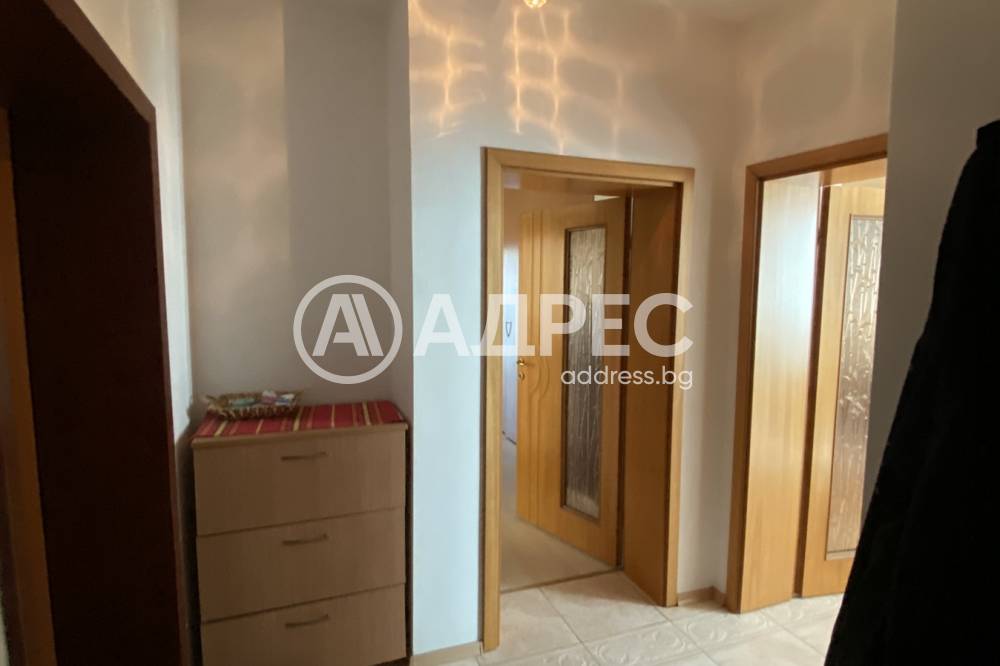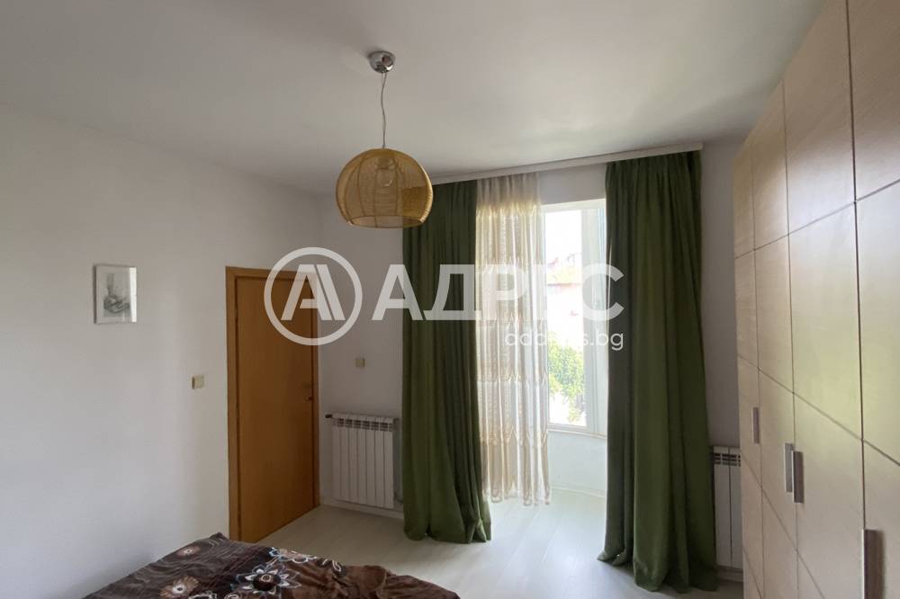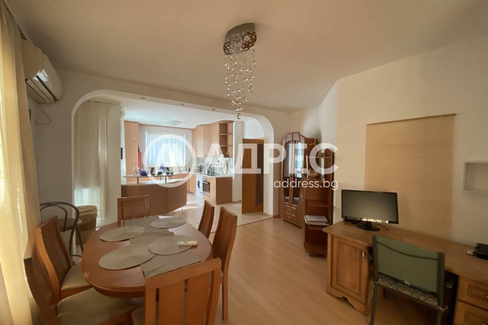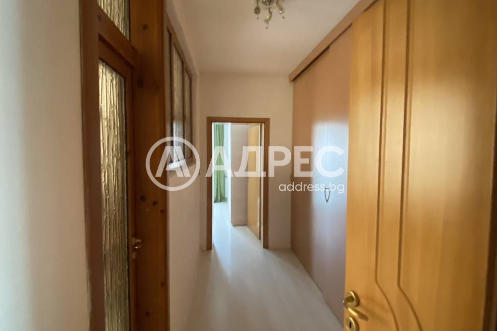 Агенция Адрес предлага етаж от къща в тих и спокоен район, но в същото време недалеч от центъра на града. Етажът се състои от: коридор с вградена гардеробна секция, просторна всекидневна, кухня и трапезария на едно, две спални помещения, две тераси, баня с тоалетна и отделно тоалетна. Жилището е абсолютно обзаведено, с локално парно на ток, климатик и камина. Всекидневната е много голяма и може да се пригоди за спане. Банята е с хидромасажна кабина. Разполага с всички необходими електроуреди, включително и вградена съдомиялна. Къщата и двора са много добре поддържани. Възможност за ползване на вътрешния двор.
