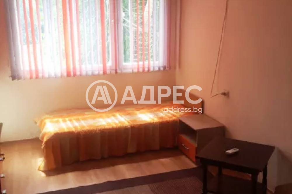 Агенция Адрес отдава двустаен апартамент находящ на първи жилищен етаж в жк Запад. Състои се от входно антре, спалня с две легла, кухня, баня с тоалетна и тераса. Жилището е напълно обзаведено и оборудвано с необходимите мебели и електроуреди /готварска печка с котлони,хладилник, пералня/. Входната врата е блиндирана. Отоплението е решено с чисто нов климатик.