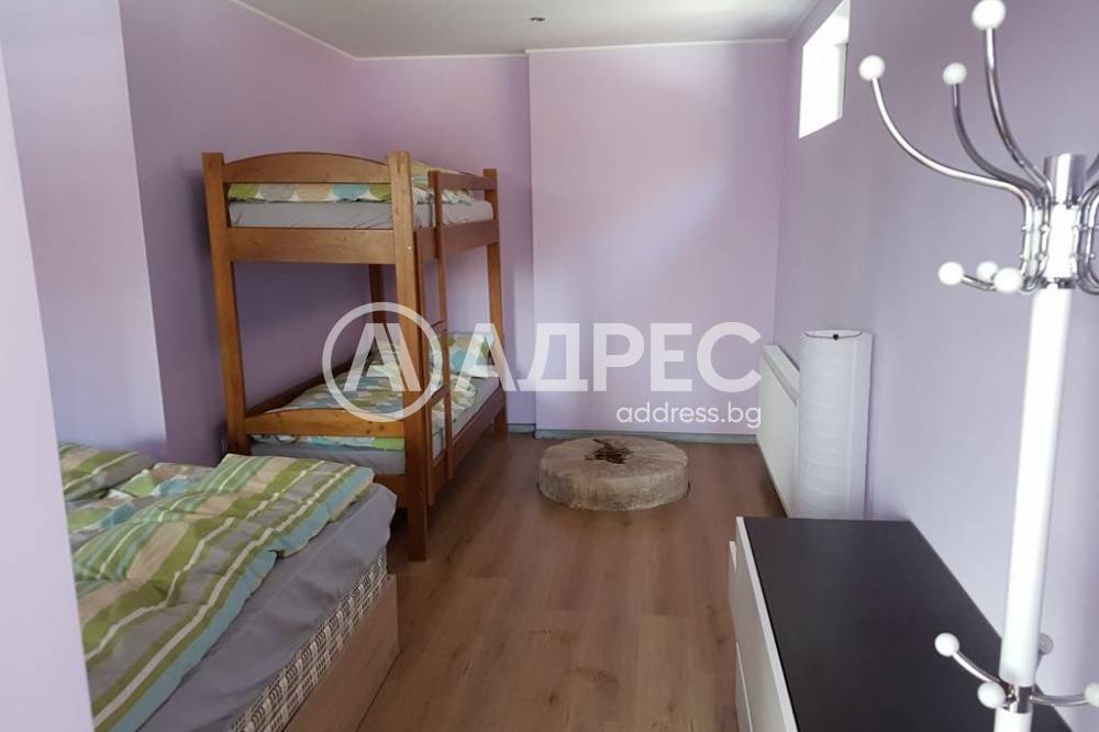 Разпределение: просторна дневна с кухненски бокс, четири спални помещения и две бани със санитарни възела. Къщата се продава обзаведена с електроуреди, мебели, отоплителна камина на дърва с водна риза, поставени радиатори във всички спални, отделно и конвектори. Имотът разполага с вода, ток и канал. Монтирана е и хидрофорна система за вода с резервоар за осигуряване на постоянен достъп на вода при проблем с водоснабдяването.