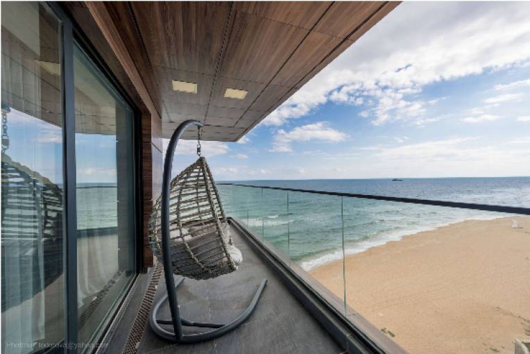 Луксозен апартамент, разположен на първа линия, непосредствено до самата плажна ивица. Две сгради с красив панорамен изглед към морето. Комплексът разполага с всички необходими удобства за пълноценна почивка и осигурява спокойствие и уют сред зеленина и красива природа. За изграждането на сградите са използвани най-новите световни технологии и нововъведения в строителството. Всички жилища се продават напълно обзаведени като интериорът е завладяващ и непреходен, с модерни стилистични решения.