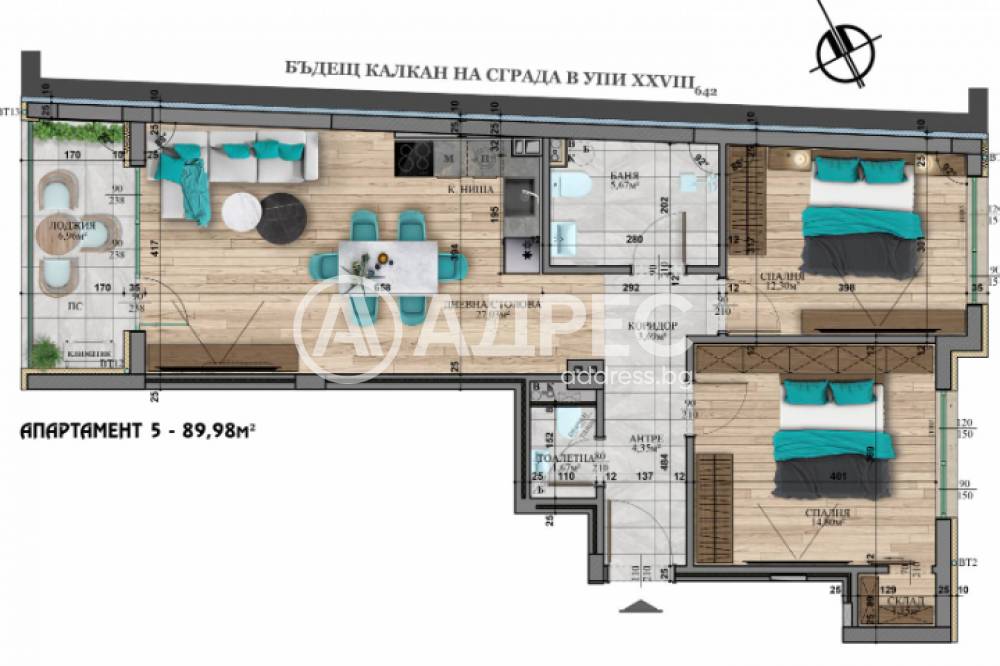 Две непреходни спални, два санитарни възела коридор,удобна лоджия