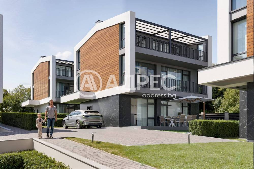 Къща в затворен комплекс с 4 спални и самостоятелен двор с площ от 295кв.м. Има следното разпределение: