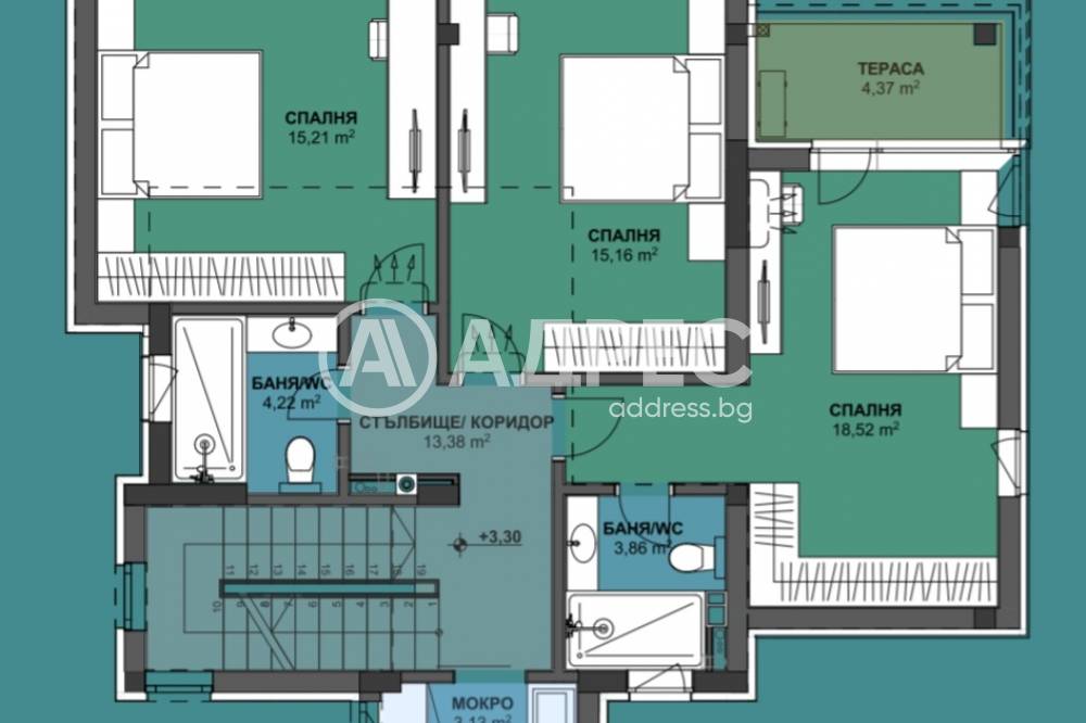Етаж 2: 96.94 кв.м. - Три спални, две бани, две