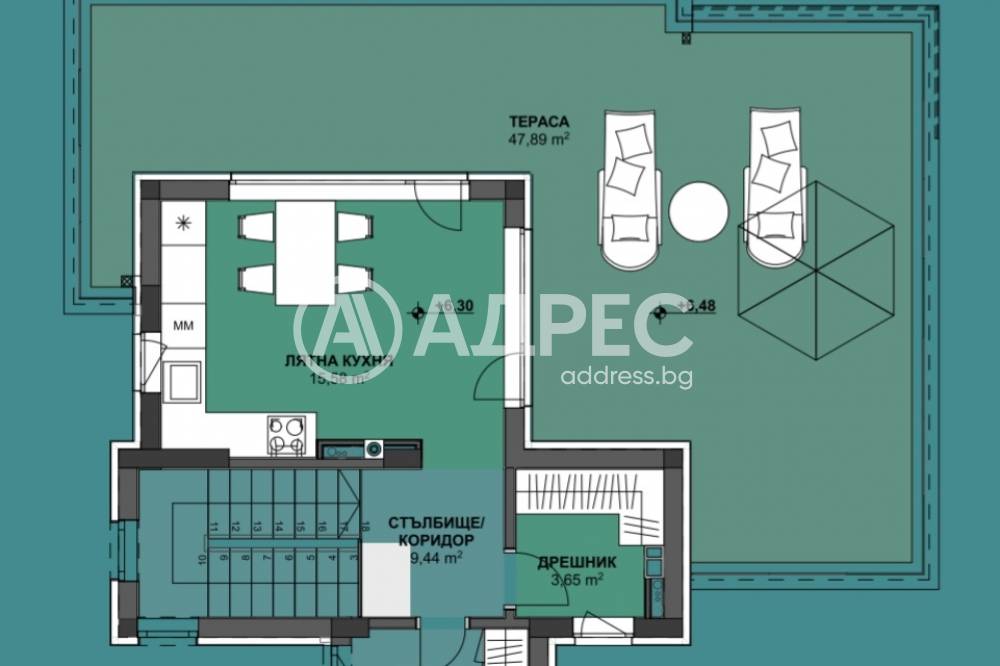 Етаж 3: 96.94 кв.м. - Покривно пространство.