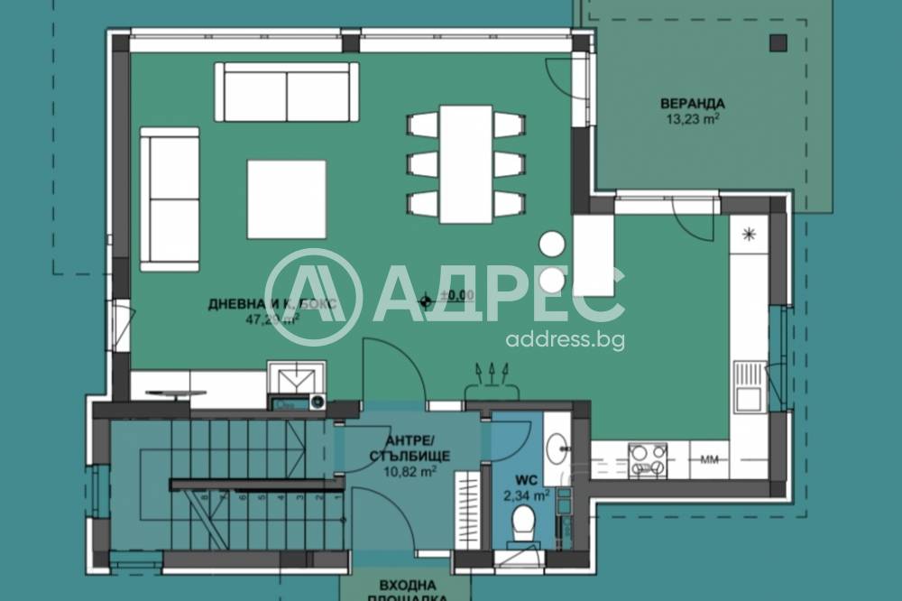 Етаж 1: 80.57 кв.м. - Дневна, просторна кухня