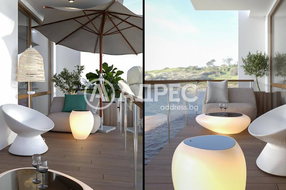 Жилищен комплекс в гр.Бургас, само на няколко крачки от морето, на първа линия море. Двустаен апартамент с гледка към морския хоризонт на първи етаж от три с площ 91,96 кв.м. Състои се от антре, дневна с кухненски кът, спалня, баня с тоалетна и тераса. Имотът ще бъде завършен до ключ с положено подово отопление в банята и кухненската зона.