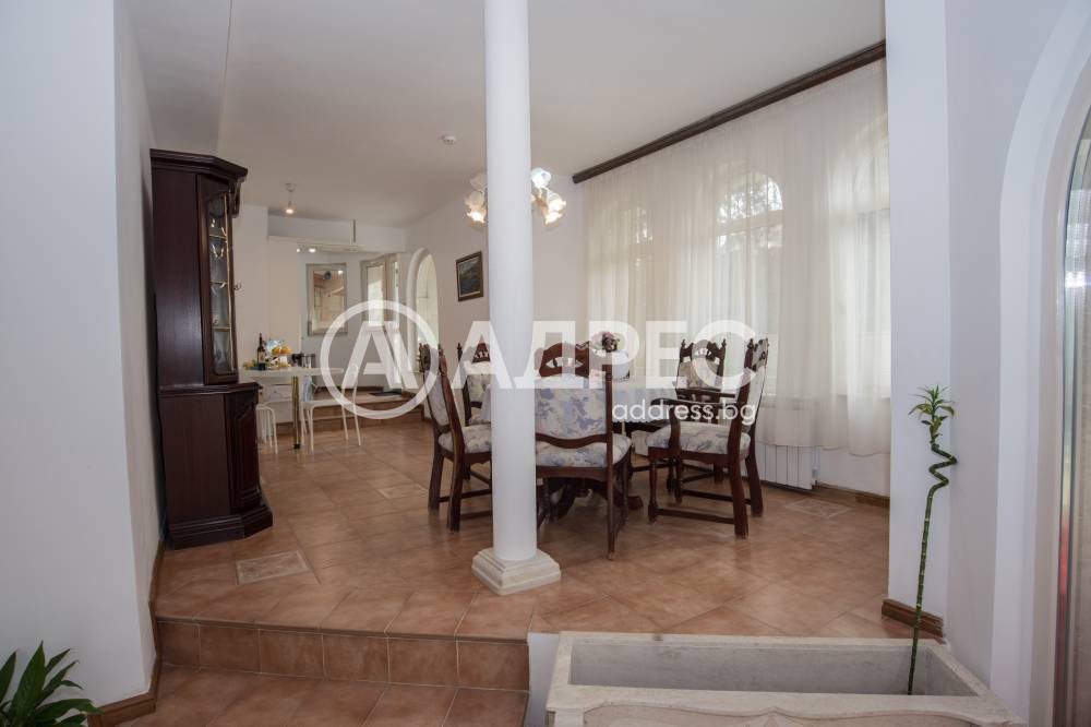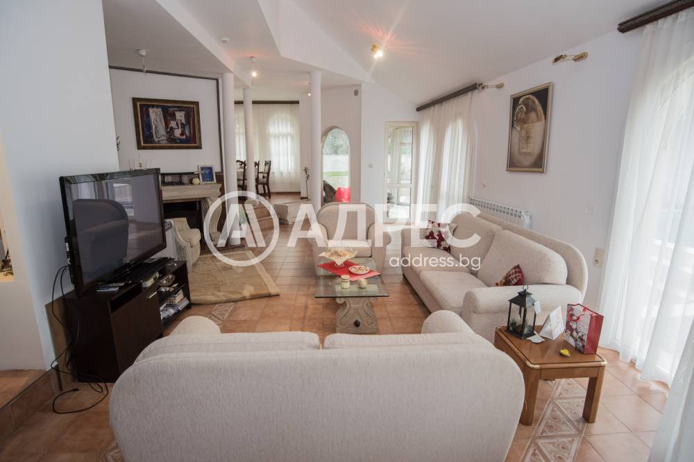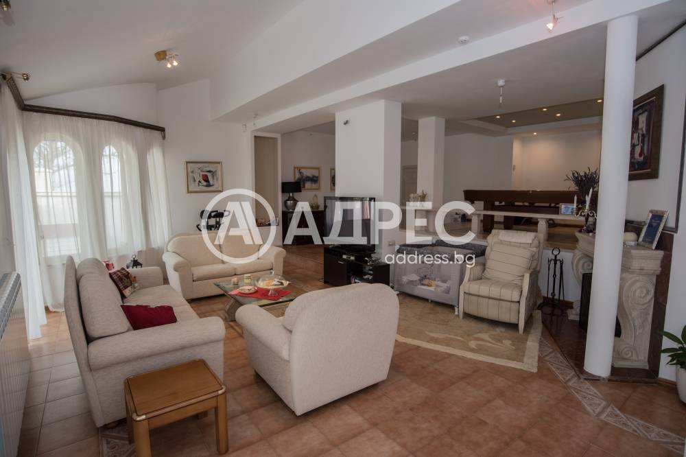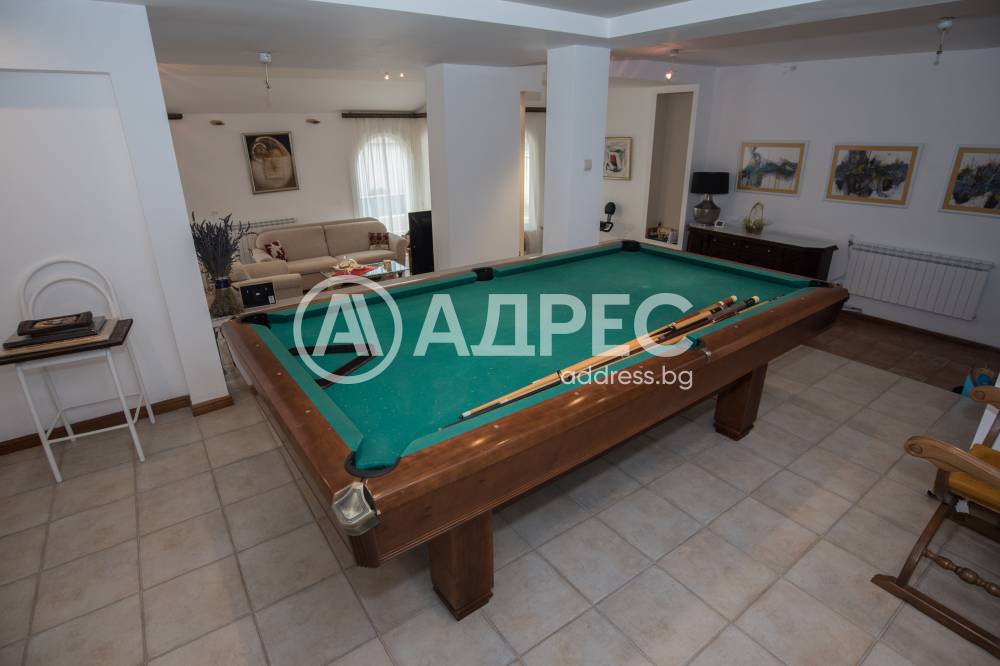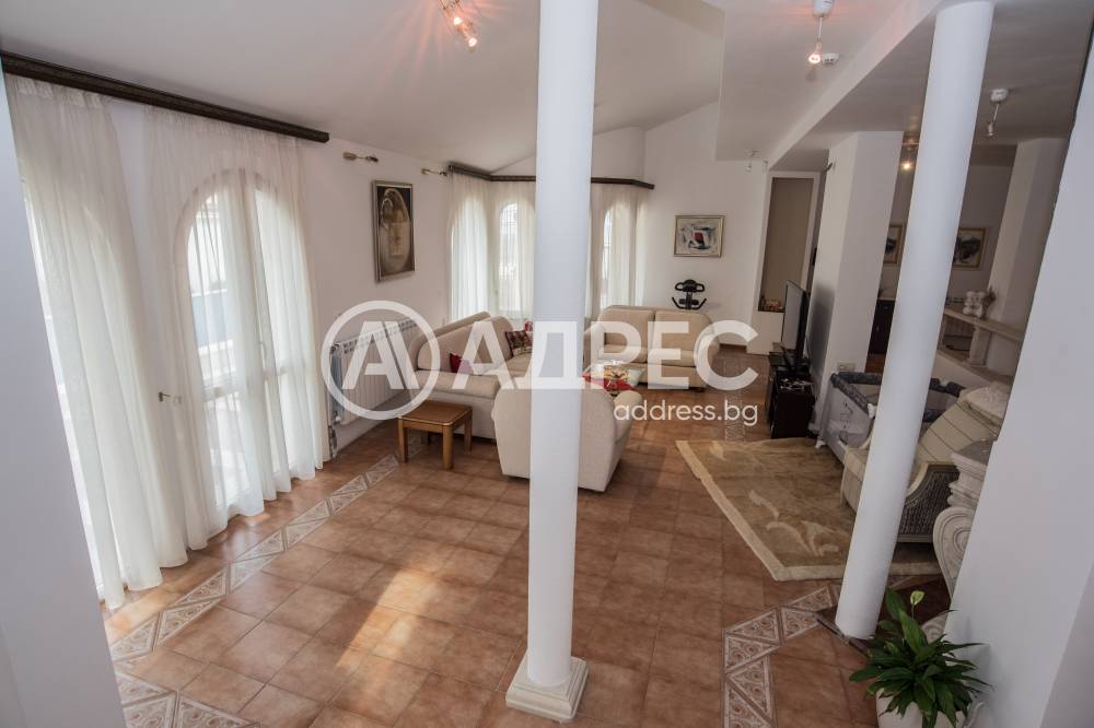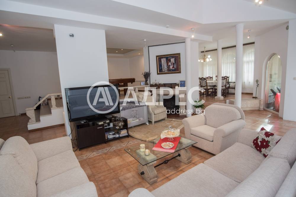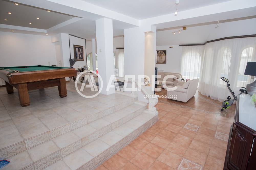 Имотът разполага с пет спални, шест бани, голяма всекидневна с кухненки тракт, фитнес, три гаража, басейн, BBQ зона. Основно реновирана фасада и покрив през 2018 г.