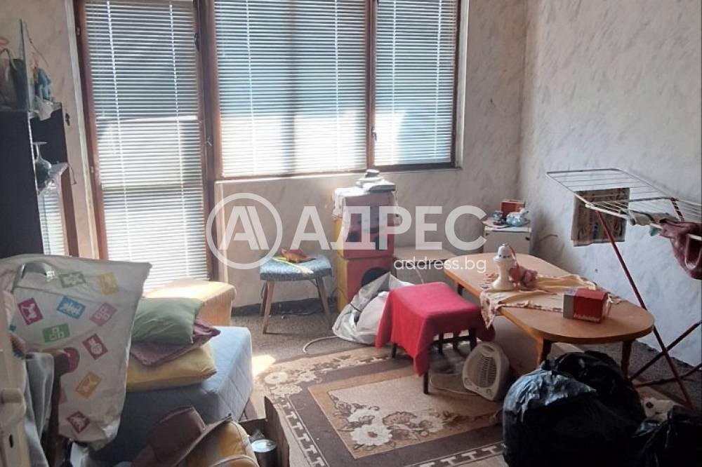 ИМОТЕКА продава тристаен апартамент, който се състои от две спални, хол, кухненски бокс, баня, тоалетна, килер, коридор и тераса пред всички стаи. Изложение Юг. Панелна сграда без асансьор. Състояние - за ремонт.
