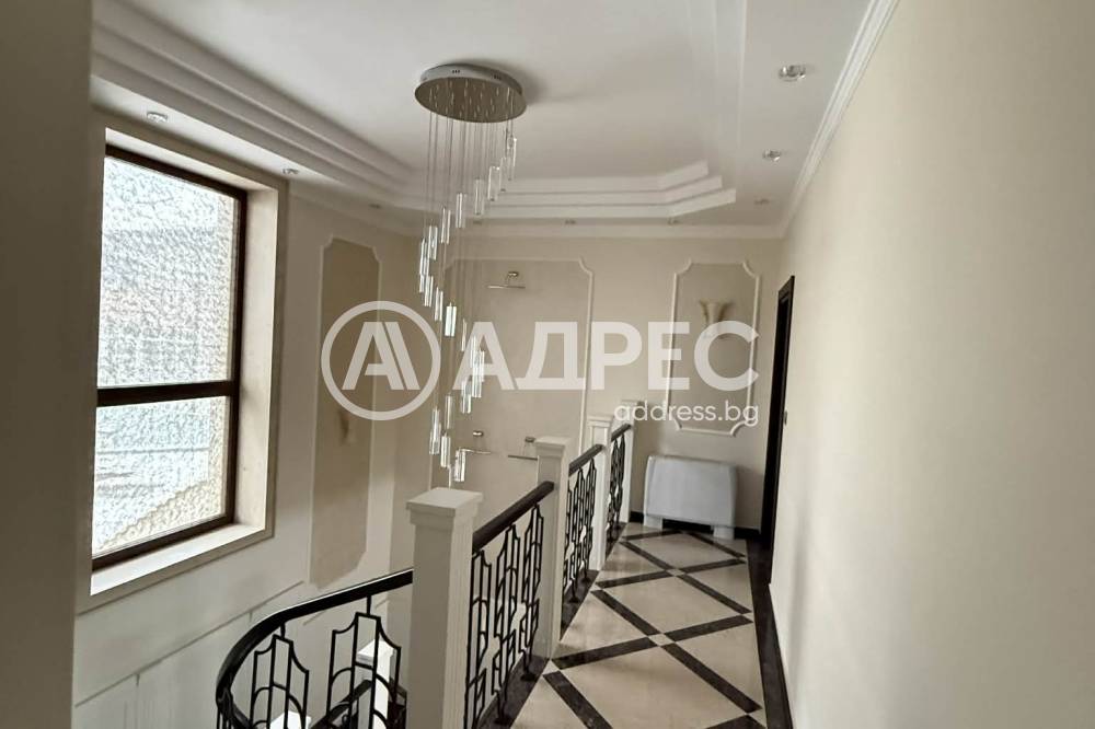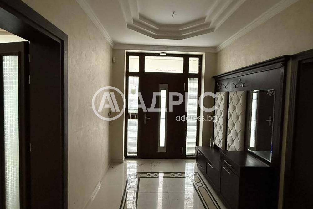 АДРЕС Недвижими Имоти продава еднофамилна къща (345,27 кв.м) с прилежащ към нея двор от 421 кв.м. в близост до центъра на града. Къщата е със следното разпределение: партерен етаж - състоящ се от просторен дневен тракт, стая, баня с тоалетна, топла връзка към гараж, гараж; втори етаж - три спални, всяка с излаз на тераса, едната със самостоятелен санитарен възел, обща баня с тоалетна за другите две; подземен етаж - в него е инсталацията за парно, термопомпа, пречиствателна станция; Къщата се продава с наличното обзавеждане и оборудване.