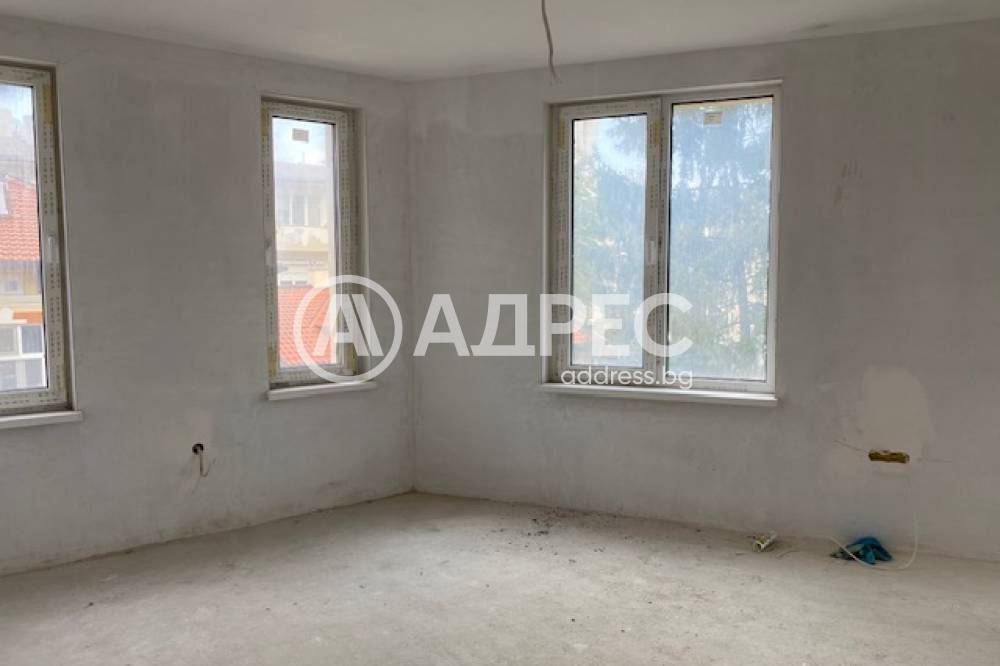 АДРЕС Недвижими Имоти продава четиристаен апартамент в представителна сграда в центъра на града, състоящ се от просторен дневен тракт, три спални, голяма баня, тоалетна, тераса и маза. Имотът се предлага на шпакловка и замазка. Изложение - И/З. В цената на жилището е включено паркомясто в подземния гараж на сградата.