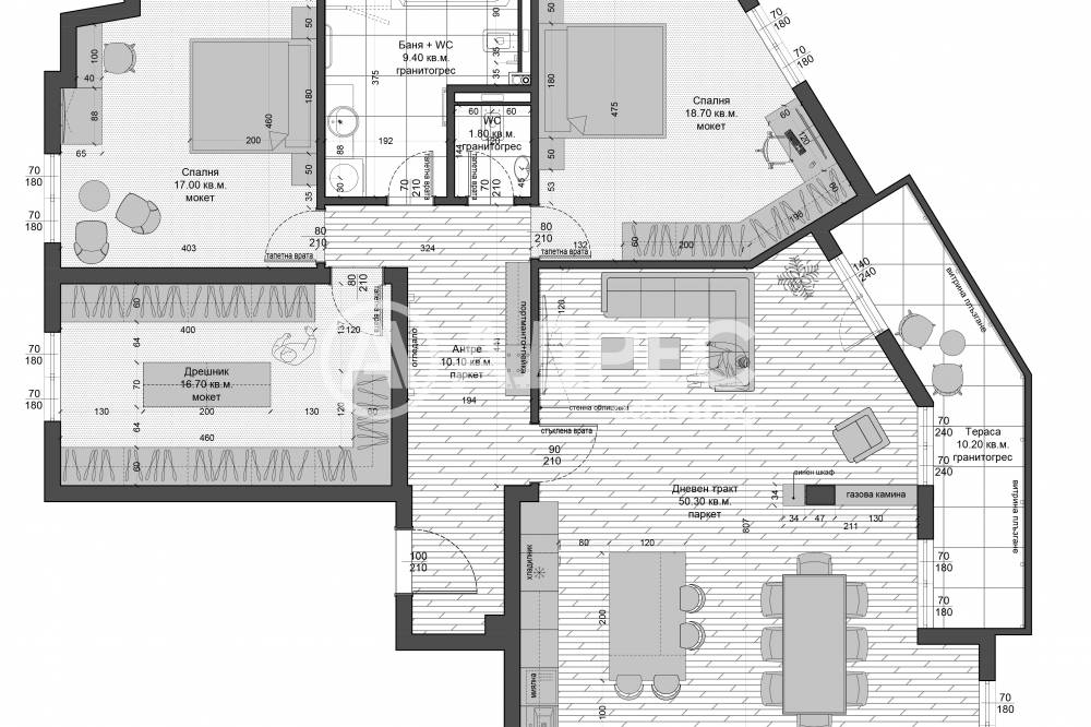 три големи спални – 16,70 м2; 17,00 м2 и 18,70 м2