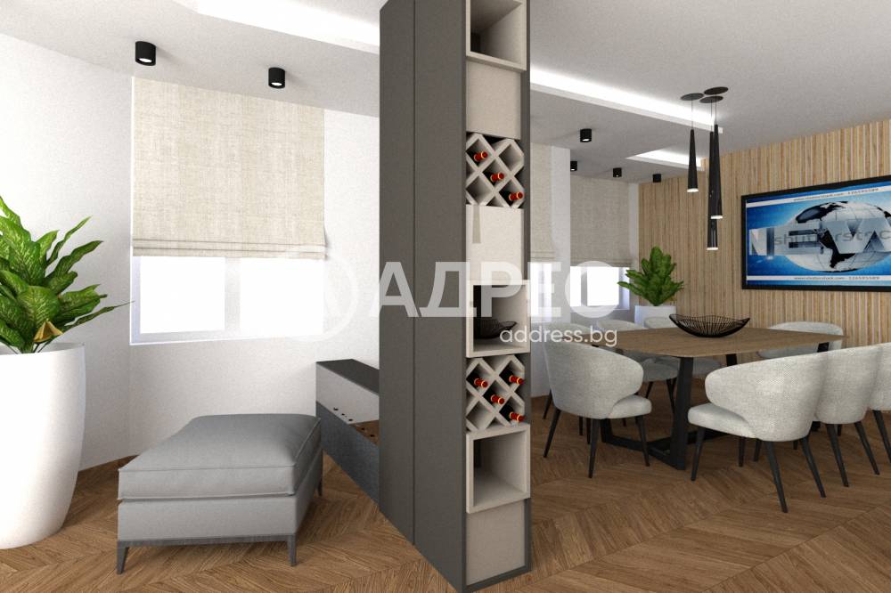 Жилището с обща площ от 155 кв.м е разположено на 3-ти етаж от 5, с изложение изток-запад.