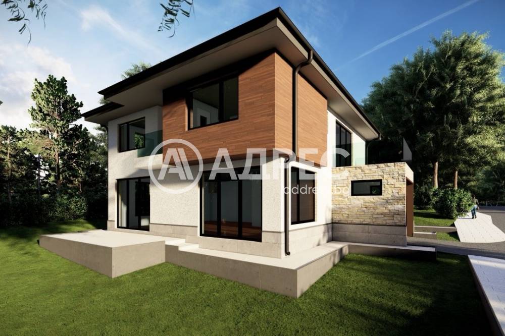 Двуетажна самостоятелна къща със следното разпределение: партера разполага с просторен хол с трапезария и кухненски бокс с излаз на хубава веранда и двора, санитарен възел и гараж; на втория етаж се намират родителска спалня със собствен санитарен възел, дрешник и тераса, две спални с отделен санитарен възел, тераса и склад. Отоплението е предвидено на ГАЗ посредством газово котле, както и има предвидено изграждането на подово отопление в цялата къща, и изводи за климатици. ЦЕНТРАЛНА КАНАЛИЗАЦИЯ!