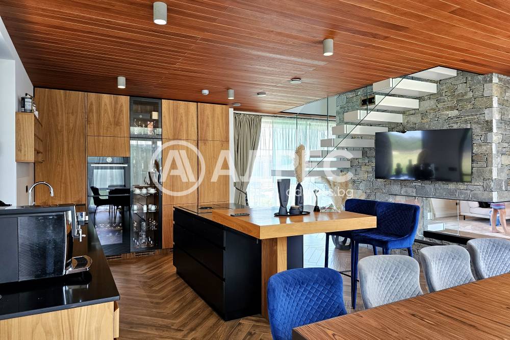 „Aurelia Homes“- Самостоятелна НИСКОЕНЕРГИЙНА , еднофамилна къща в затворен бутиков комплекс. с РЗП 317.63 кв.м. върху площ от 976 кв.м. Къщата разполага с три спални: 1 спалня-14.54 кв.м., 2 спалня- 23,25 кв.м., 3 спалня - 17,57 кв.м., самостоятелна тоалетна, три бани: 1 баня - 4,40 кв.м., 2 баня- 6,27 кв.м., 3 баня- 4,80 кв.м., склад 1.98 кв.м., техническо помещение, 11.66 кв.м., антре 8,56, просторна дневна на 1-ви етаж 94,25 и на 2- етаж 20,28 кв.м.. Към имота има Гараж 24,41 кв.м. и Паркомясто 23,05 кв.м..