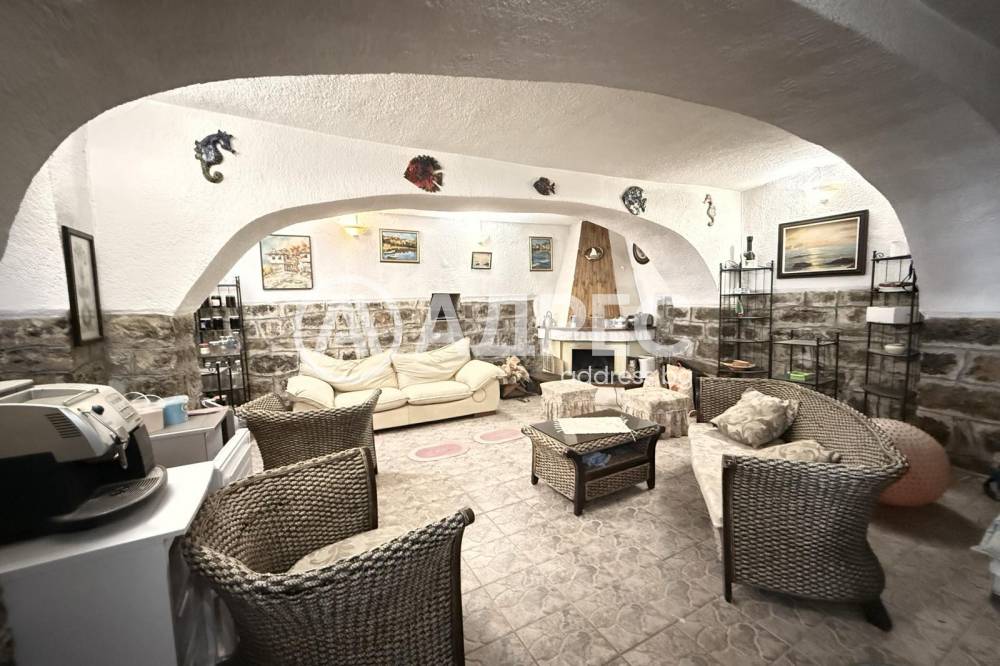 Сутерен/ Партер - механа , кът за отдих,винарна , баня с тоалетна , сервизно помещение с котел на пелети за отопление и топла вода .