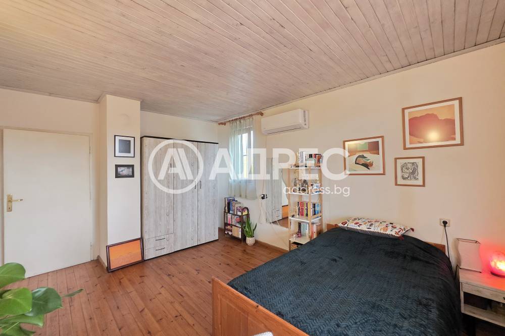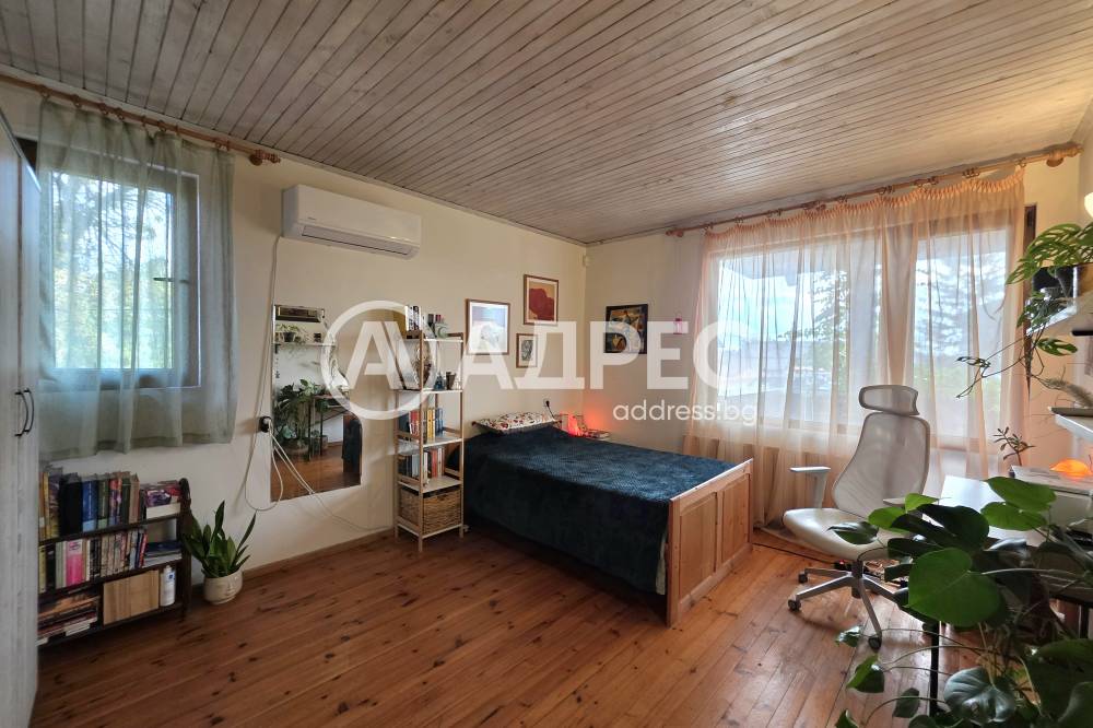 Масивна двуетажна къща в спокойното и красиво село Горни Богров. Къщата е със застроена площ 87 кв.м и 122кв.м. с включени тераси и външно стълбище. Стаите са с източно и южно изложение и има гледки към Витоша и Стара планина. Състои се от: първи етаж- входно антре, незавършена голяма баня, коридор, хол с кухненски бокс, спалня и санитарен възел. От дневната се излиза на хубава тераса към двора. Вътрешно стълбище води към втори етаж състоящ се от две спални, като в едната има и възможност за работен кабинет или трета спалня, коридор и санитарен възел. Вторият етаж може да се обособи като самостоятелно жилище.