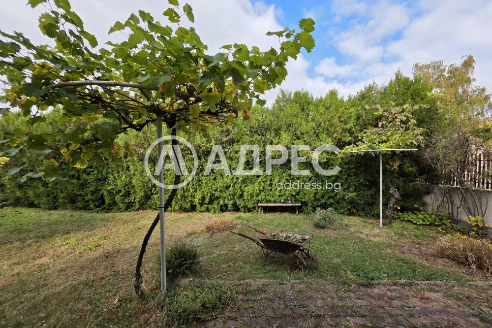 Дворът е равен, ограден с плътна ограда и високи туи, които допълнително създават усещене за спокойствие и уединение. В двора има плодни дръвчета, лози с десертно грозде, много зеленина и цветя.