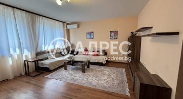 Предлагаме Ви тристаен апартамент с площ от 104 кв.м. Жилището се състои от дневна с кухненски бокс с излаз на тераса, две спални и два санитарни възела. Кухненският бокс е обурудван с чисто нови уреди, необходими за едно домакинство, последен модел, клас А++. Отоплението на жилището е с инвенторни климатици. В двете спални са монтирана стенни вградени гардероби.