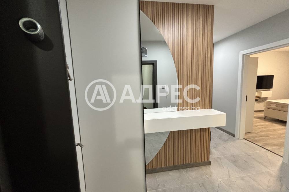 Луксозен Нов Тристаен апартамент под наем, изцяло обзаведен и оборудван с висок клас мебели и електроуреди, отговарящи на всички съвременни стандарти. Към имота има собствено ПАРКОМЯСТО! Жилището впечатлява с просторен и светъл дневен тракт – хол с трапезария и модерна кухня в едно, с директен излаз на тераса. Разполага със спалня с тераса, втора комфортна спалня, стилна баня с тоалетна, както и отделна тоалетна с мокро помещение.