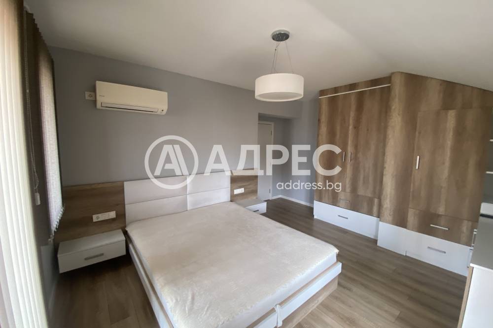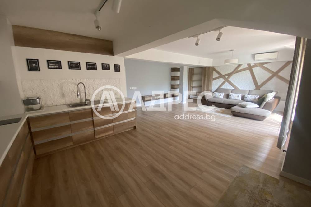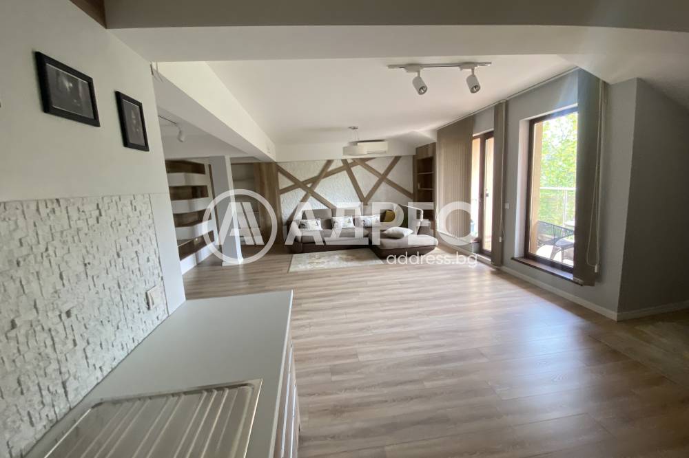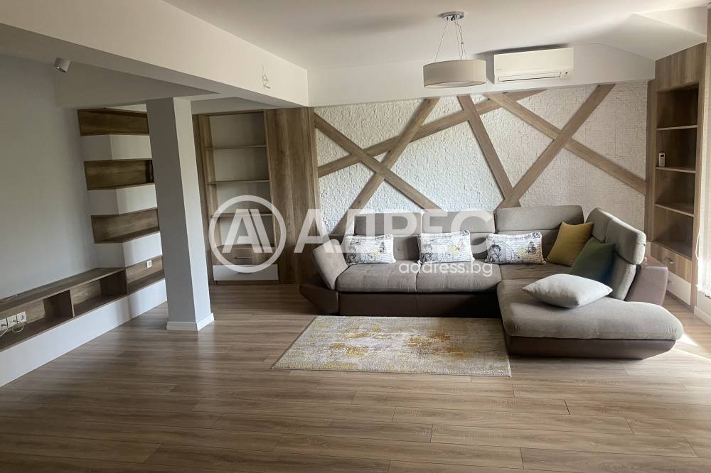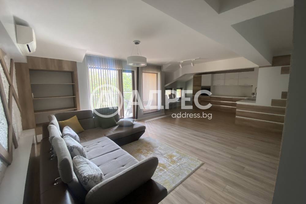Предлагаме Ви тристаен апартамент с площ 136 кв.м. Жилището се състои от антре, просторна всекидневна с кухненски кът с излаз на слънчева, южна тераса, родителска спалня с излаз на тераса, втора спалня, санитарен възел и перално помещение. Жилището е завършено със съвременни и висококачествени материали. Кухнята е луксозно изпълнена - удобна и функционална. Имотът е обзаведен със стил в изчистени и меки нюанси.